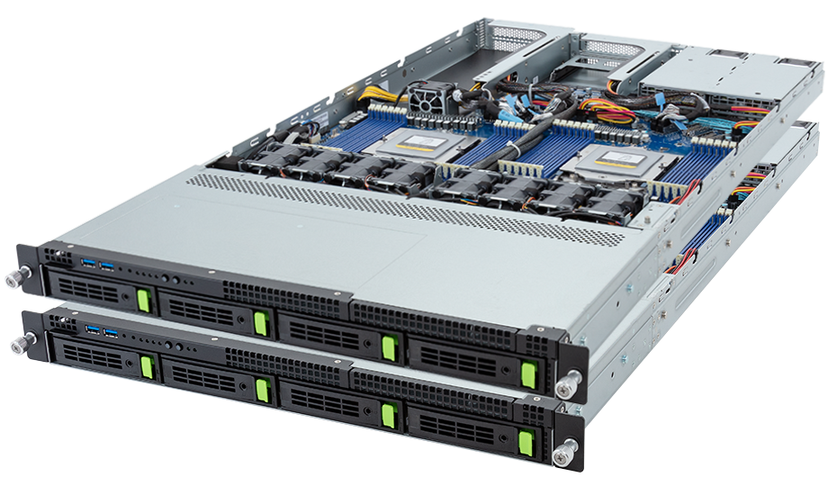 La piattaforma supporta configurazioni dual-CPU con socket indipendenti, affiancati da un’ampia disponibilità di slot DIMM DDR4/DDR5 per massimizzare capacità e banda di memoria.